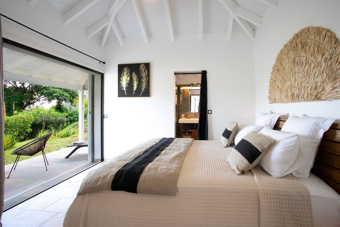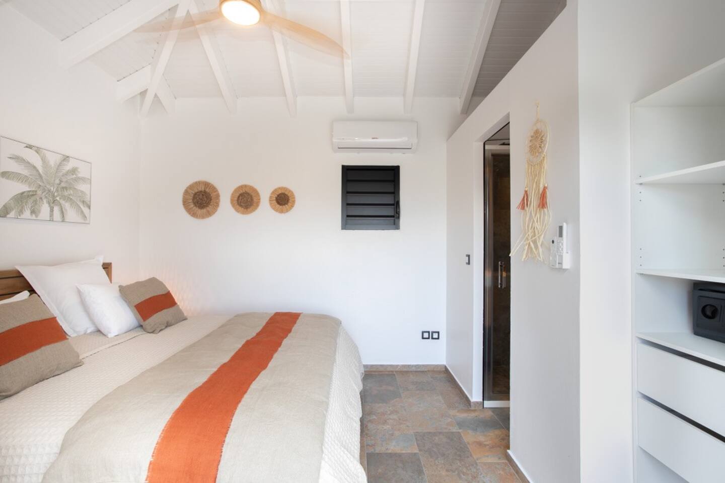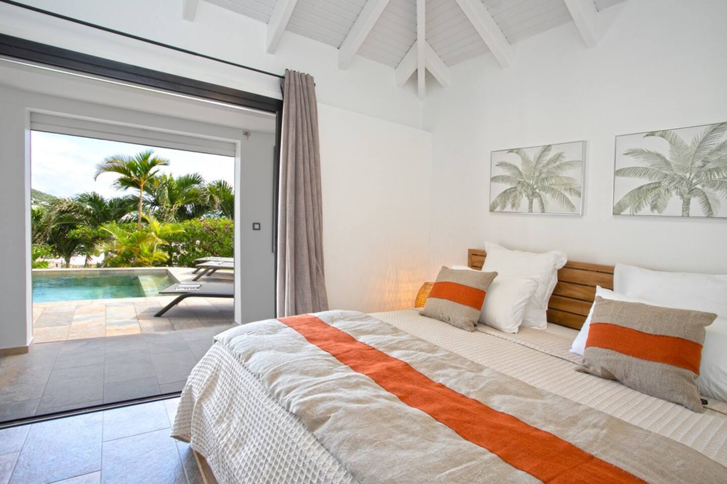 3 chambres climatisées avec salle d’eau privative, lit King size avec literie haut de gamme, accès direct à la piscine, terrasses et pleine vue mer.