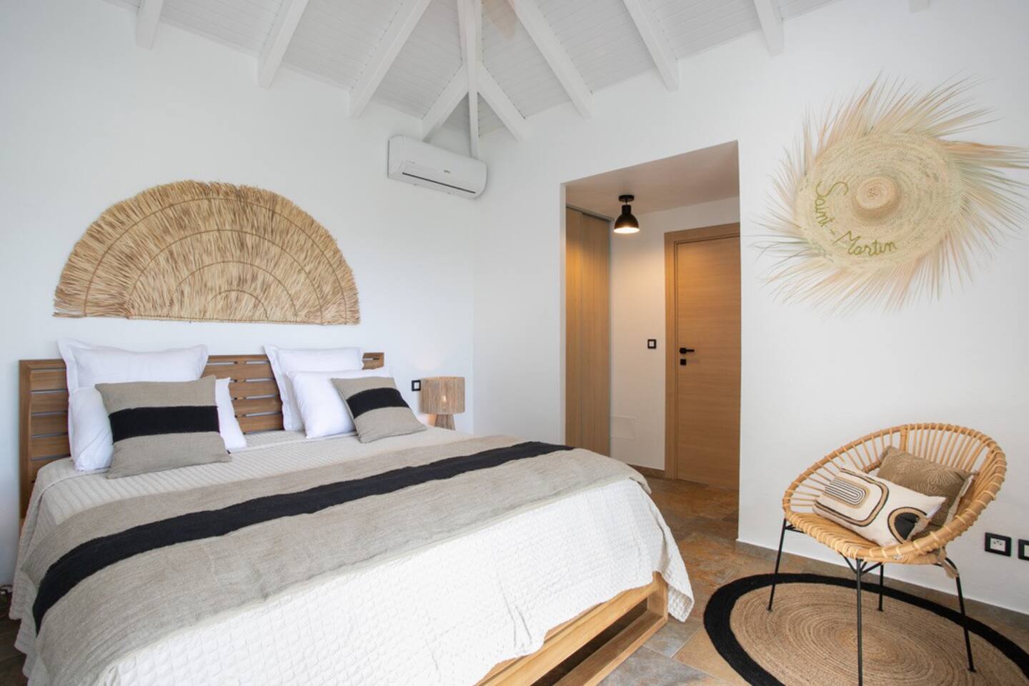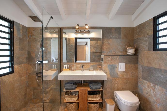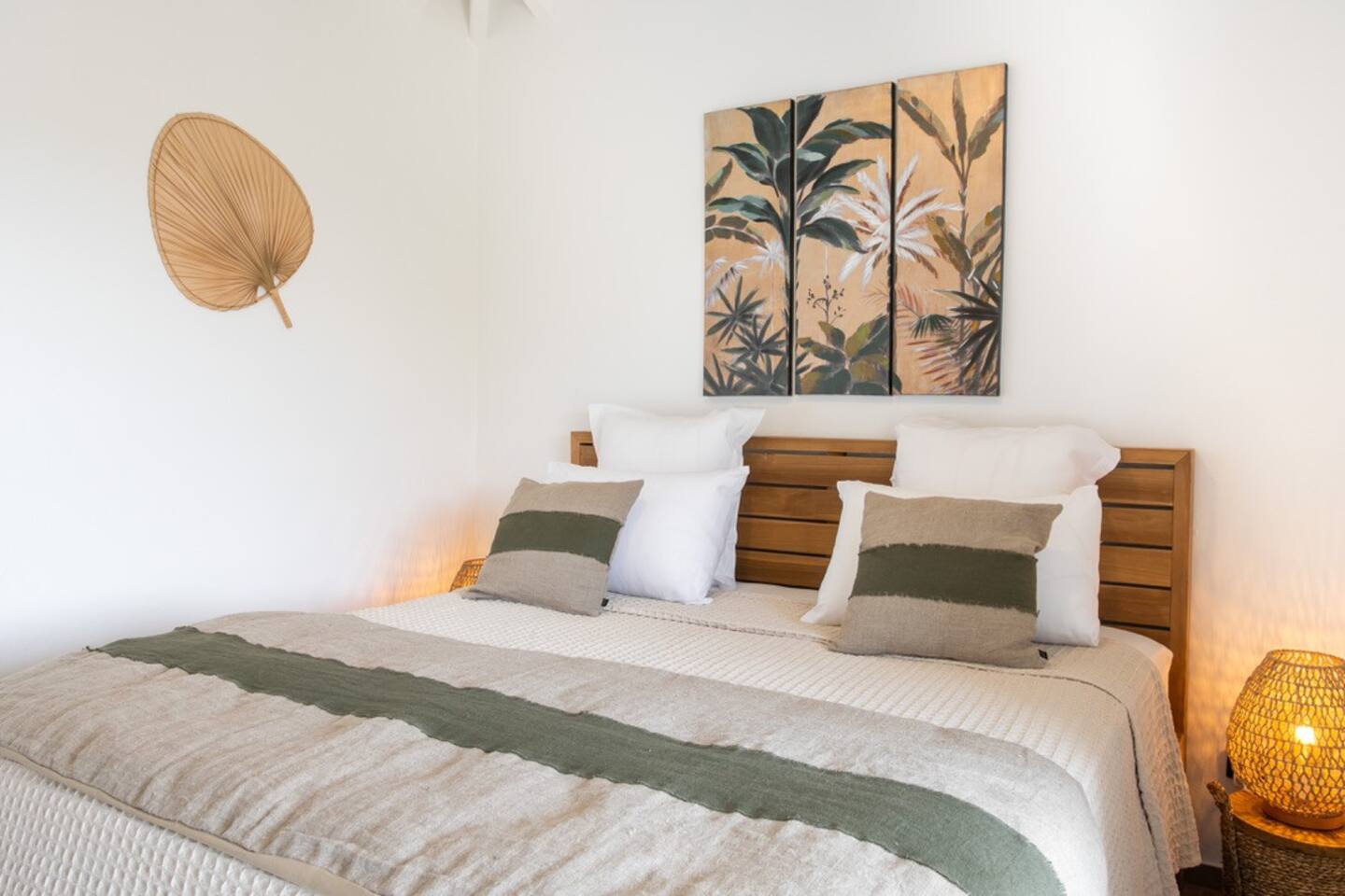3 chambres climatisées avec salle d’eau privative, lit King size avec literie haut de gamme, accès direct à la piscine, terrasses et pleine vue mer.