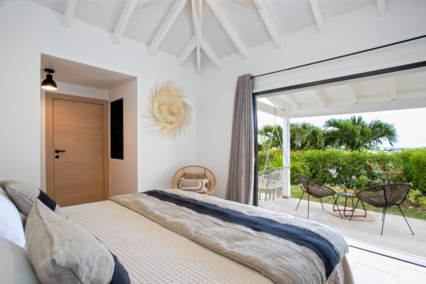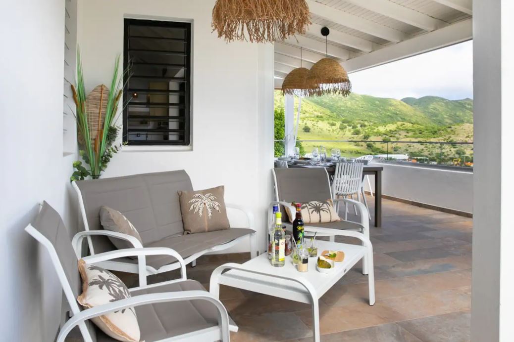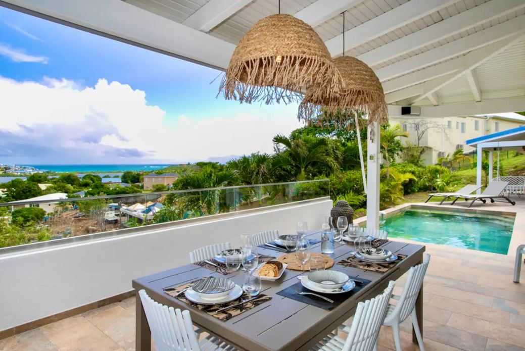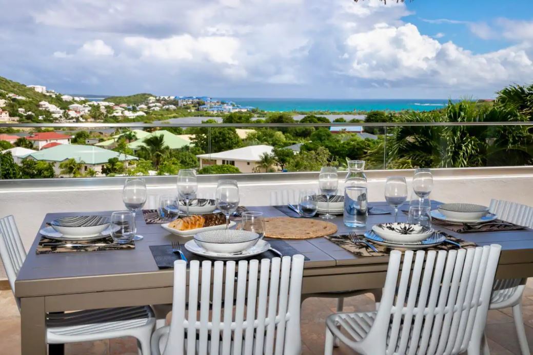 La terrasse permet de prendre ses repas avec pleine vue sur la Baie Orientale, de boire un cocktail au bar extérieur ou de se relaxer dans un de ses différents espaces détente proposés, en toute intimité. Vous disposerez également d’un grand BBQ pour vos grillades, avec une splendide vue sur la mer !