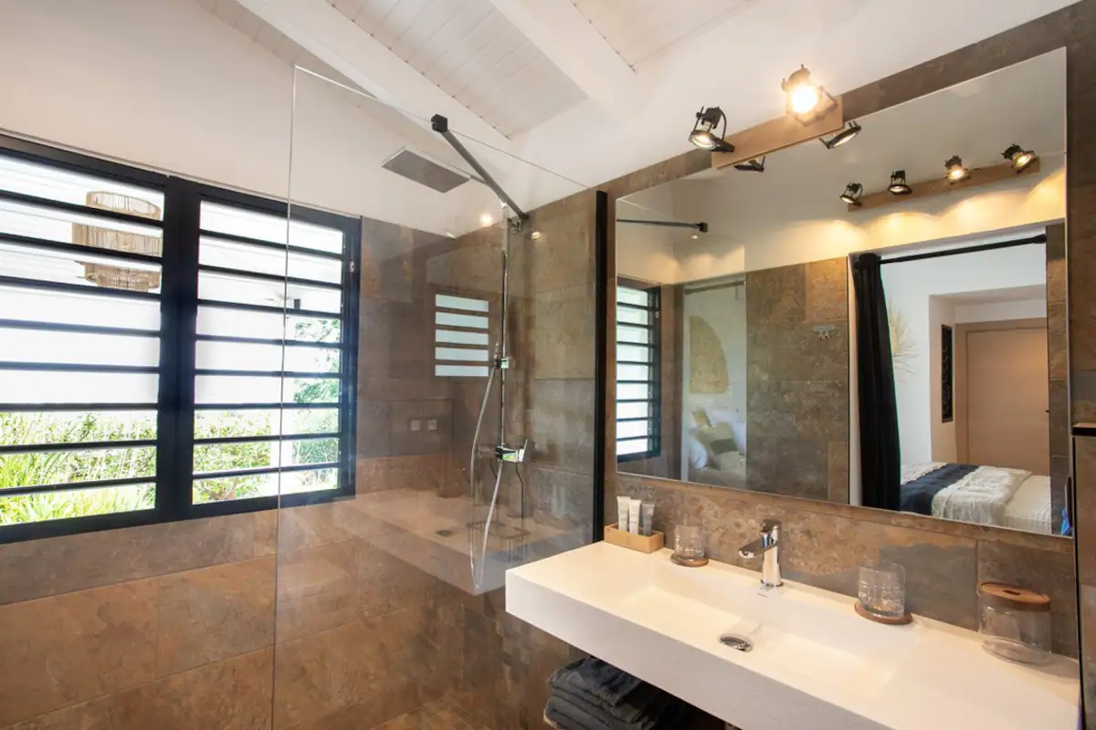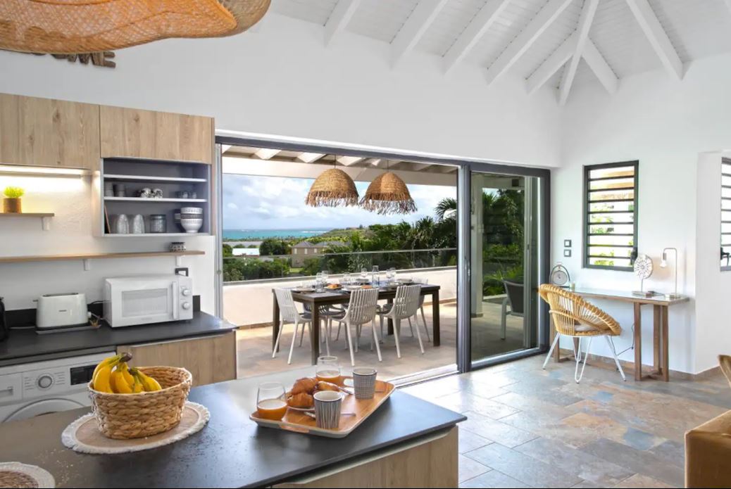 Situé dans les hauteurs d’un lotissement sécurisé par portail et vidéo surveillance, surplombant la Baie Orientale. La villa est bien ventilée, ce qui permet de profiter de chaque moment de la journée.