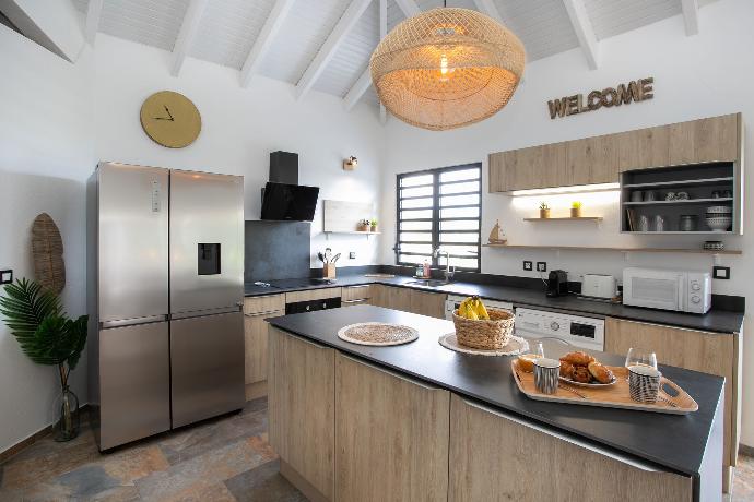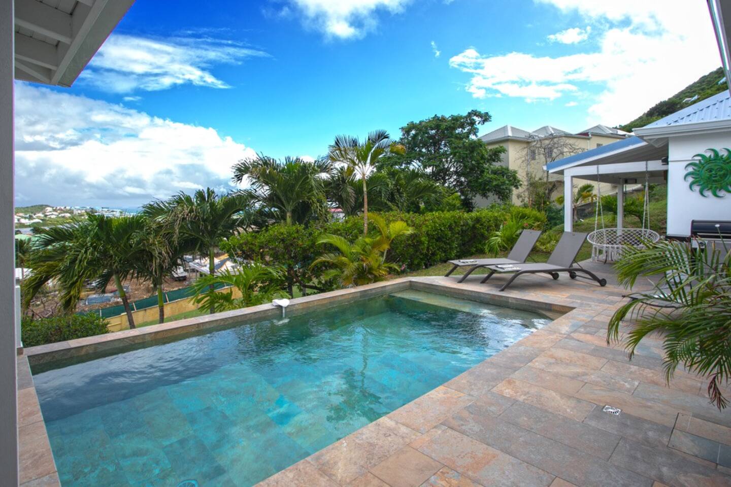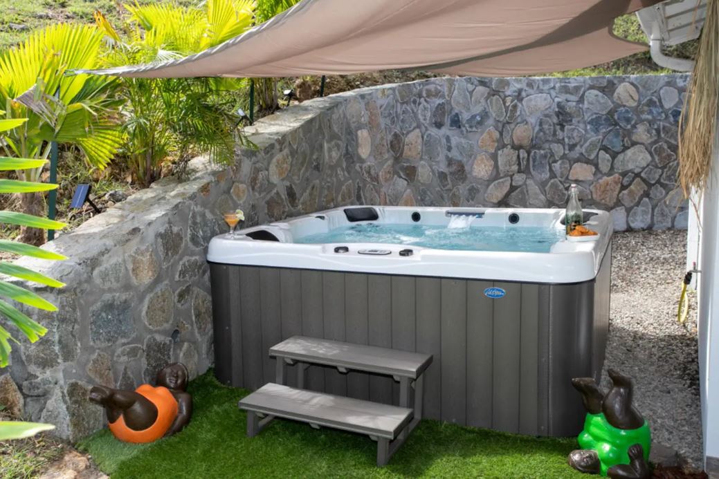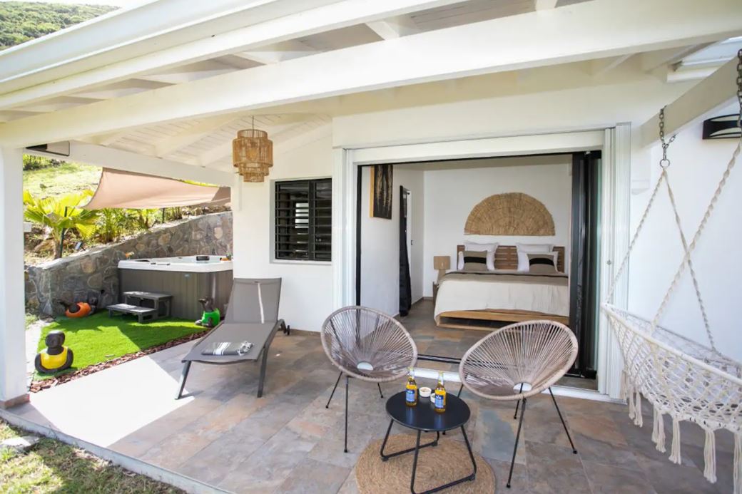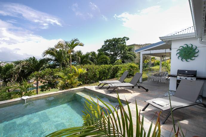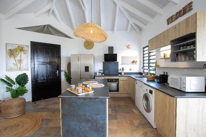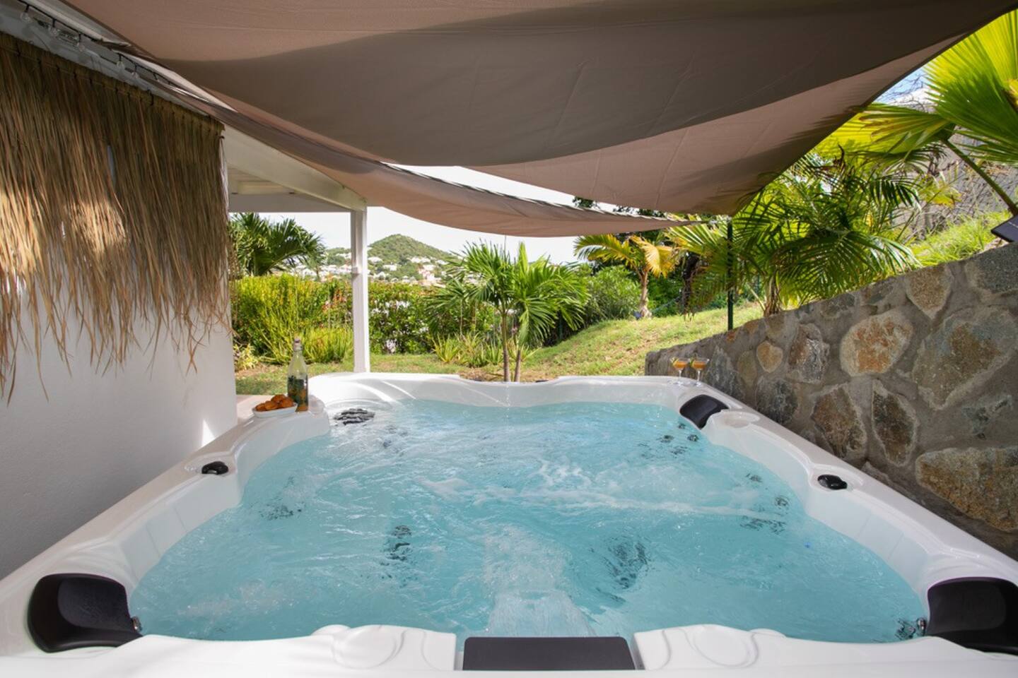 La cuisine est bien équipée où BBQ et salon vous invitent à cuisiner des petits plats et à prendre un verre de punch dans la piscine ou le grand jacuzzi !
