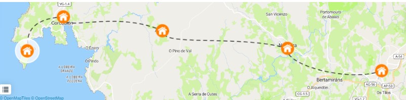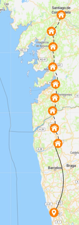 Carte itinéraire : Porto-Santiago-Fisterra-Porto