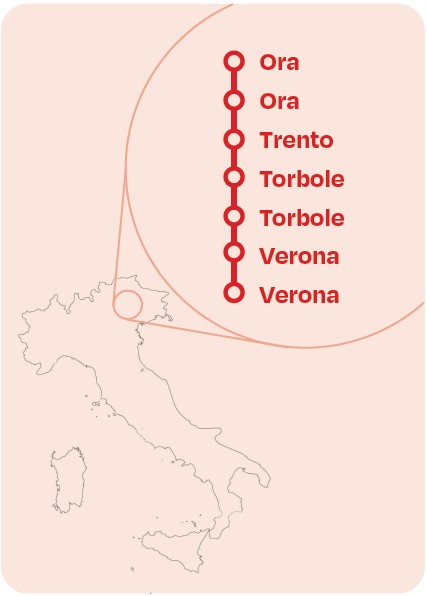 - 7 nuits avec petit-déjeuner en hôtel *** ou similaire (2 à Ora, 1 à Trente, 2 à Torbole, 2 à Vérone)